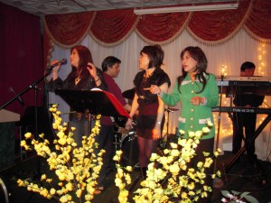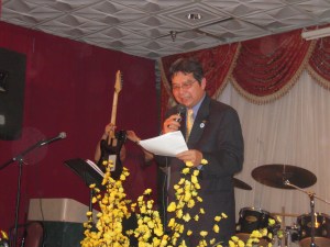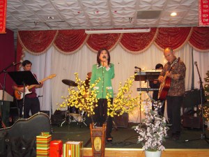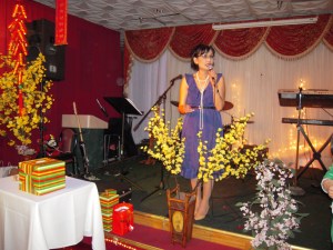 Quý em trong Ban Tổ Chức uyển chuyển, vừa làm việc, vừa vui chơi tiệc tất niên rất vui vẽ, giao trách nhiệm MC toàn chương trình cho Bầu già nầy đảm trách trong tinh thần Team Work đặc thù của ROF.